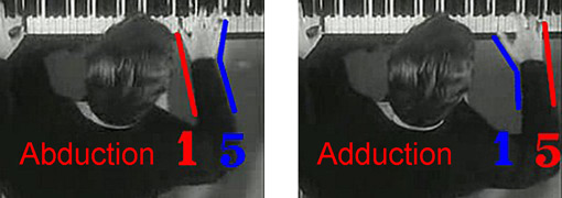 The below pictures (video frames) and animations show some most effective hand and body movements. I selected them from Garrick Ohlsson’s recording (video above) made immediately after he won the Warsaw Chopin Competition in 1970. Pay particular attention to the abduction and adduction of the hand and the movements of the elbow.