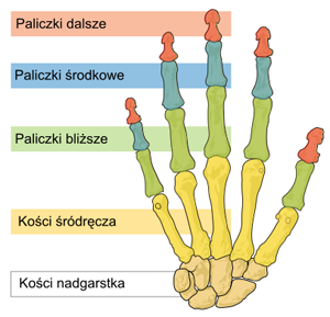 - Paliczek bliższy, to ten, który jest bliżej śródręcza, czyli najwyższy człon palca.